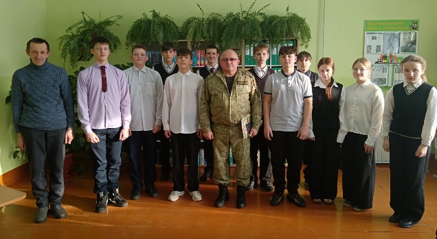 В рамках открытия месячника военно-патриотической работы в нашей школе прошла встреча с руководителем по военно-патриотическому воспитанию Козловским В.Р. Виктор Романович рассказал ребятам о ключевых фактах из истории нашей страны и напомнил, что будущее можно построить только в мирном, независимом и суверенном государстве.