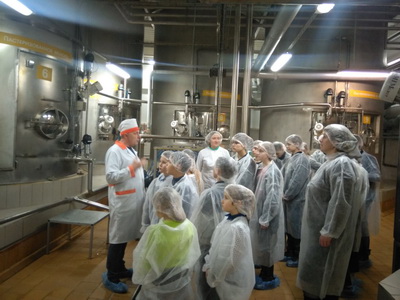 30 января ученики 9 класса вместе с классным руководителем Н.В. Галузо и участниками кружка «Юный турист» под руководством педагога О.С. Завадской побывали на эксурсии на Глубокском молочно-консервном комбинате. Мероприятие прошло в рамках реализации программы по профориентации среди школьников. Экскурсия на МКК состоялась благодаря заинтересованности и поддержке директора предприятия Андрея Соколовского, инженера по стандартизации и сертификации производственной лаборатории Татьяны Еркиной, специалистов комбината – начальника цеха по производству сухой сыворотки и сухих молочных продуктов Валерия Телицы и главного технолога Любови Гайдученок. Школьники побывали в консервном цехе, где выпускается сгущенка, а также в лаборатории, где специалисты проверяют на качество всю продукцию комбината. Любовь Николаевна рассказала о технологии приготовления молочных сладостей и о профессиях, которые нужны для производства. Познавательную обзорную экскурсию в цехе по производству сухой сыворотки и сухих молочных продуктов провел Валерий Митрофанович. Современное оборудование, механизация и автоматизация процессов на производстве поразили подростков.