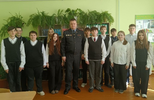 В рамках информационно-образовательного проекта "ШАГ" на тему "Быть достойным гражданином Республики Беларусь - значит быть частью белорусского общества" прошла встреча с начальником Глубокского отдела Департамента охрана МВД РБ, депутатом районного Совета депутатов С.А.Алешкевичем. Гость обсудил с учащимися значимость активной гражданской позиции и личного вклада каждого в развитие общества, подчеркнув, что быть достойным гражданином - значит быть неотъемлимой частью белорусского народа и разделять его ценности. Также была затронута и тема профориентации. Встреча получилась доверительной и пролезной для всех участников, а в конце желающие смогли задать вопросы.