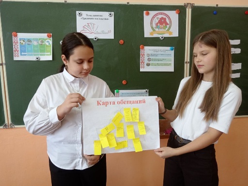 Традиционно третий четверг месяца в нашей школе проходит в рамках тем программы "Я. Моя семья. Моя Родина". 6-й класс сегодня говорил о Традициях наследства. 9 класс знакомился с Белорусской моделью сциально-экономического развития. 7 класс обсуждал Традиции добра. 5-й класс задумался над Секретами успешной работы в команде. Тема классного часа программы в 3 классе - Позитивное мышление. Ребята, передавая солнышко, называли лучшие качества одноклассников. Подбирали ассоциации к словосочетанию "позитивные мысли", делились друг с другом секретами хорошего настроения. Более подробно о мероприятиях Вы можете узнать в наших группах в социальных сетях.
